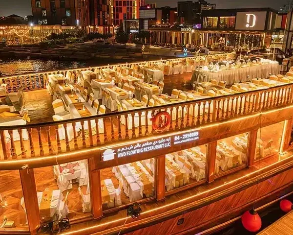 Experience something that is inexplicable and beyond your imagination with our 90-min classy cruise. The Venetian styled canal will leave you and your loved ones impressed. This traditional dhow will offer you the best views of modern Dubai from the most unexpected angles. Witness the glorious architectures of Dubai that the world acknowledges while you feast on the international cuisines. An elegant and sophisticated setting will elevate your cruising experience and leave you with lovely memories to cherish for a lifetime. With live entertainment, calming views, and a serene ambiance, this is a perfect way to unwind and experience Dubai’s charm at night.